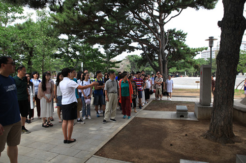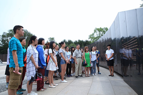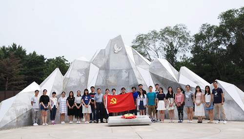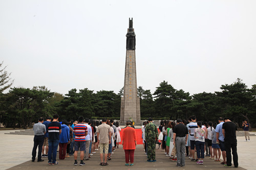 2016年7月15日,金牌影院 思想政治理论课论文竞赛获奖学生“红色之旅”暑期社会实践团一行70余人来到沈阳抗美援朝烈士陵园,凭吊先烈,寄托哀思。