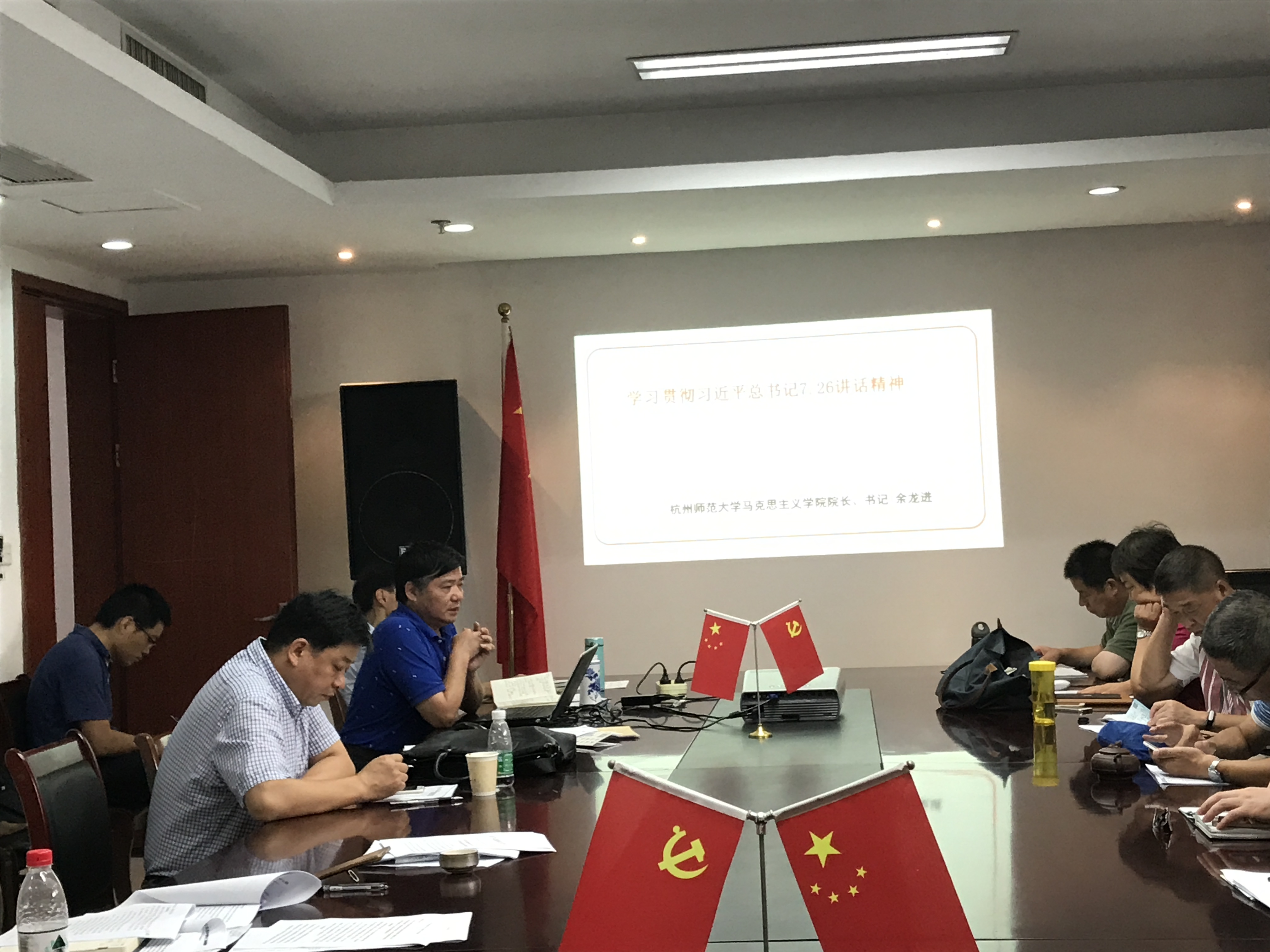 8月31日上午,金牌影院 召开全体教职工大会,专题学习习近平总书记“7.26”重要讲话精神。学院总支书记、院长余龙进首先强调,学习宣传贯彻习近平总书记“7.26”重要讲话精神是当前一项重大政治任务,特别是作为思政课教师,要深刻领会习近平总书记“7.26”重要讲话的重大意义和丰富内涵,学深悟透、入脑入心,不仅要学好还要宣传好。