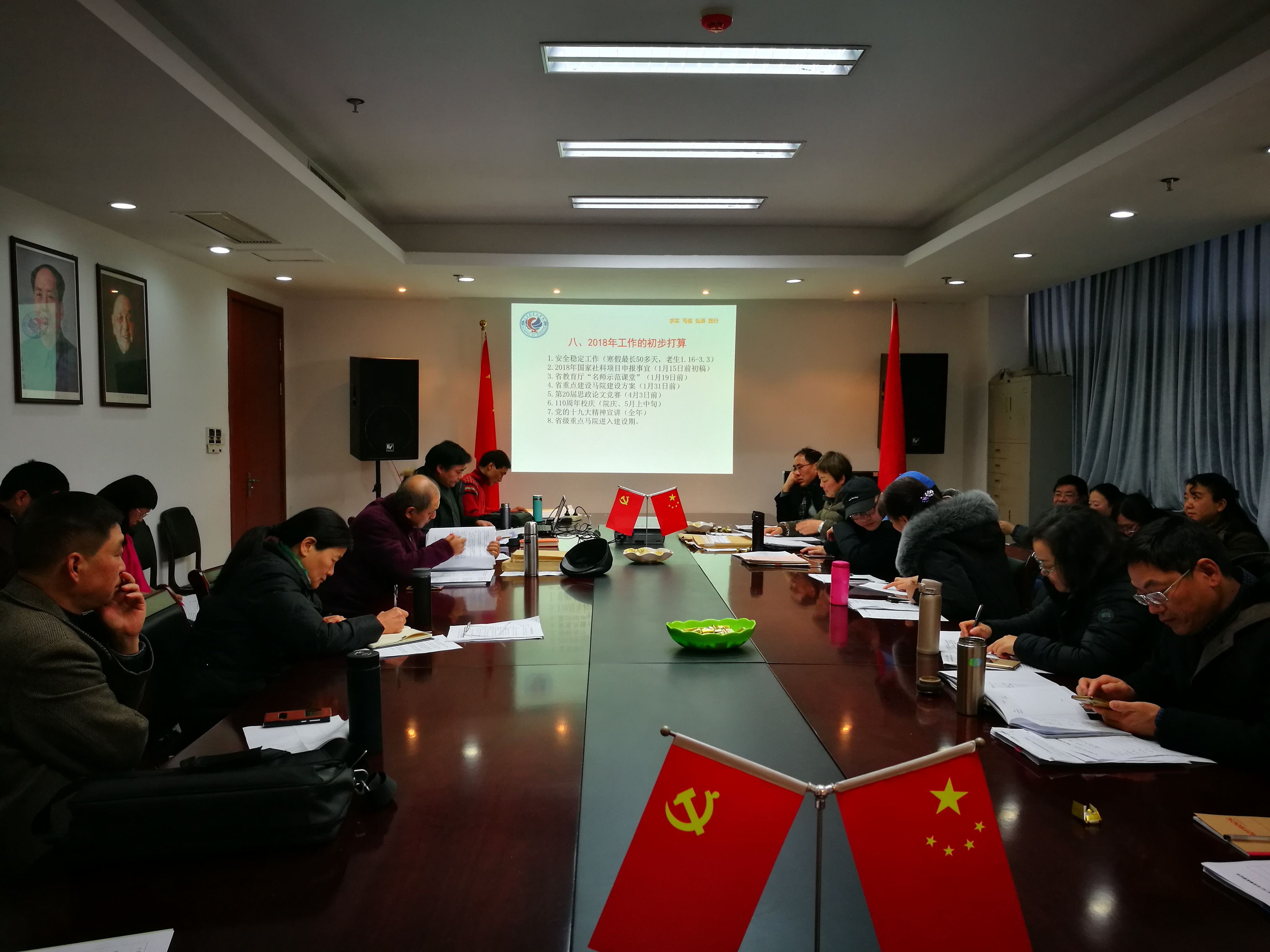 1月14日(周日),临近期末,金牌影院 召开了全院教职工大会。学院领导及全体教职工参加了会议,党总支书记、院长余龙进主持会议。