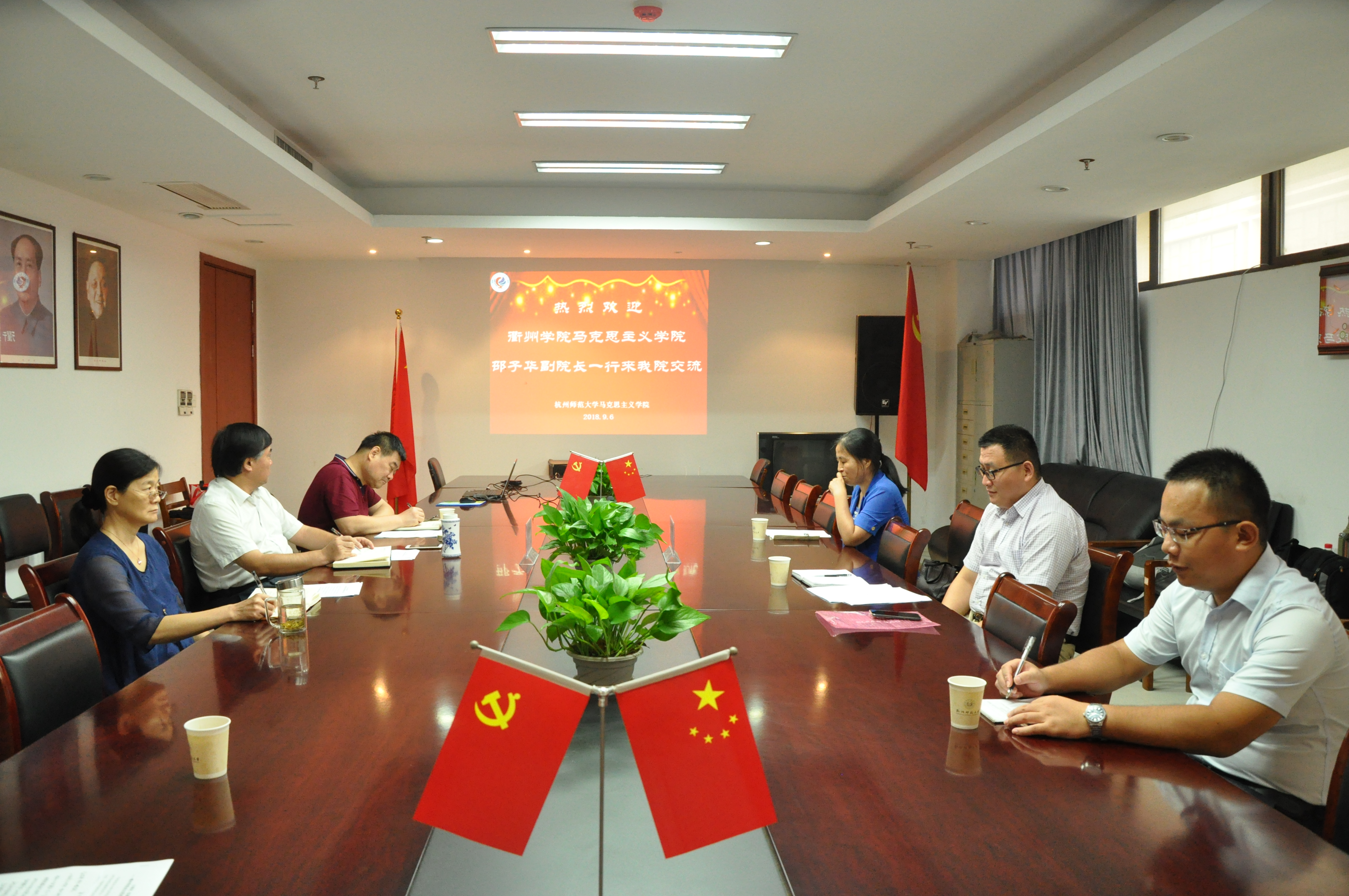 2018年9月6日下午,衢州学院金牌影院 副院长邵子华一行3人来金牌影院 交流考察。学院党总支书记、院长余龙进,副院长何丽君以及思想道德修养与法律基础教研室教师李瑞平等参加了交流会。