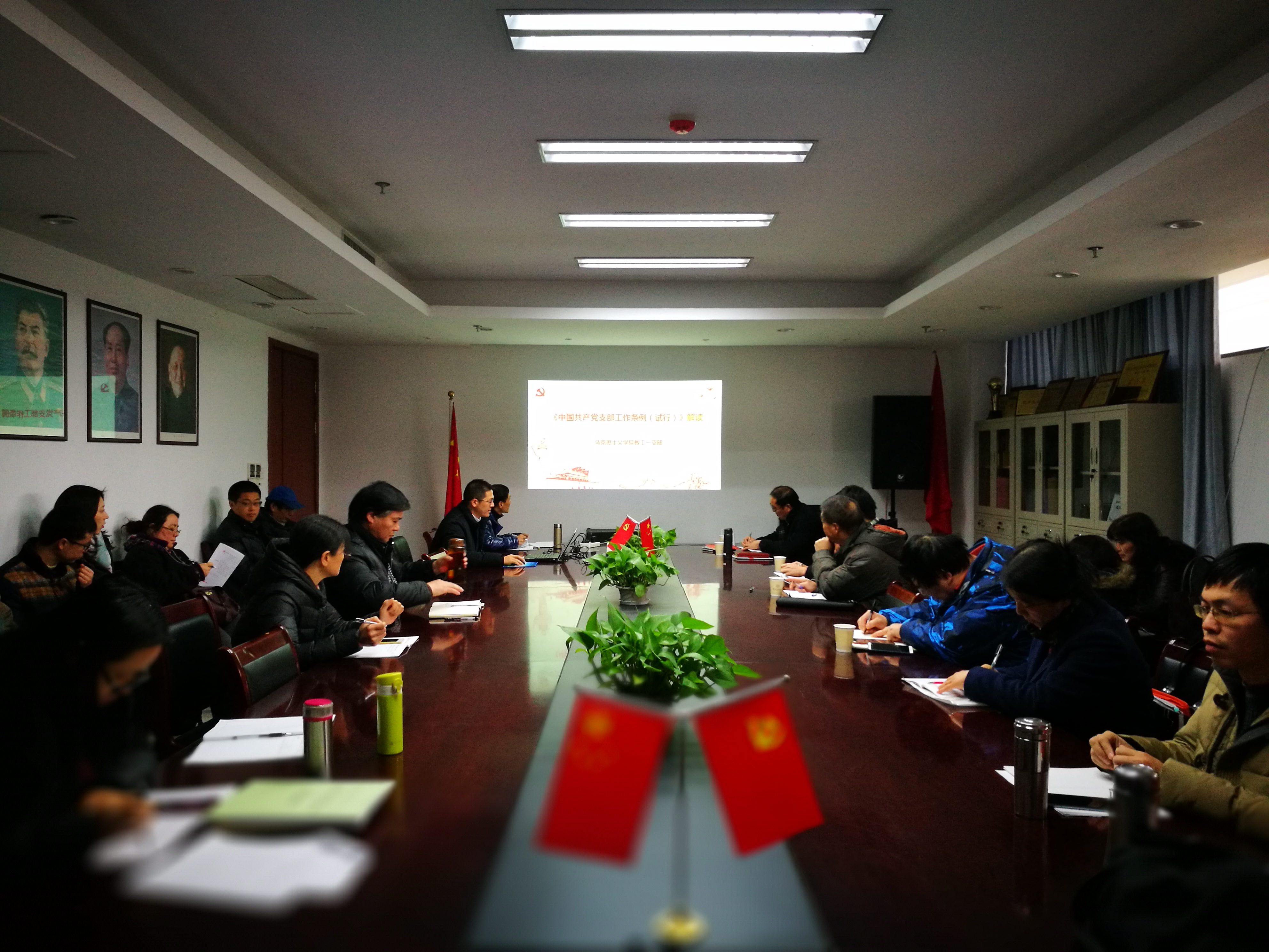 12月12日下午,金牌影院 组织学习《中国共产党支部工作条例(试行)》(以下简称《条例》),全体党员和教职工参加了学习。此次学习由教工第一支部书记应维华副教授担任主讲人,党总支书记、院长余龙进主持专题学习会并上党课。