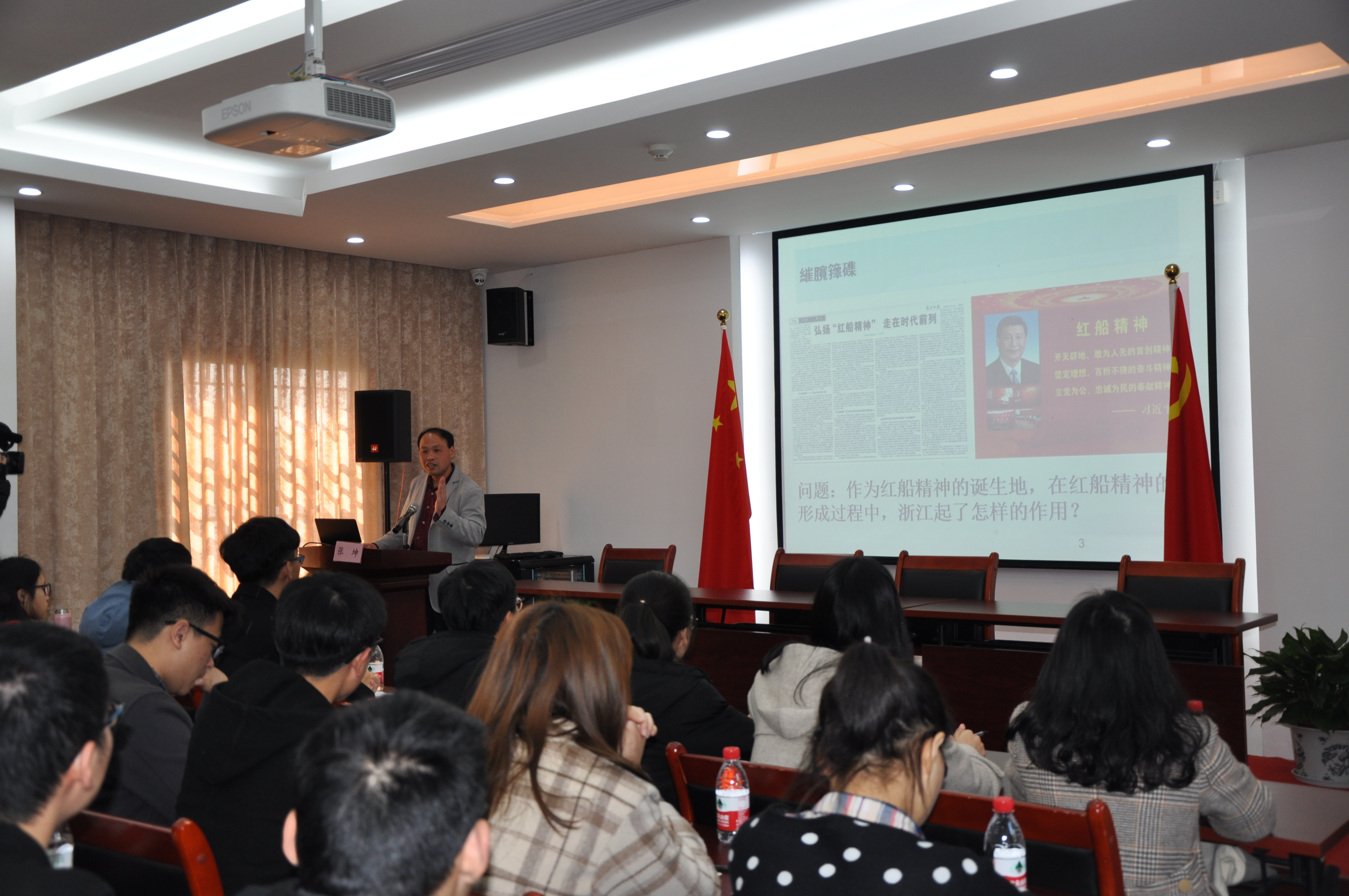 根据因地制宜、因时制宜、因材施教的原则,金牌影院 教师张坤博士结合习近平总书记重要讲话精神,专门在党史馆开讲了第一堂思想政治理论课——《红船精神与建党时期的浙籍共产党员》。