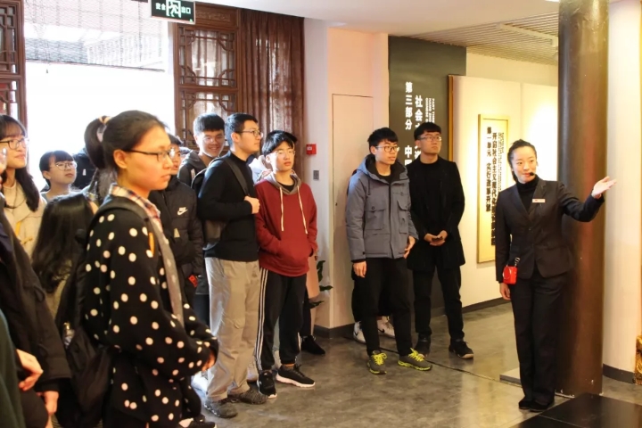 一进入党史馆的大门,思政教学便已展开。跟着宣教员的生动讲解,杭师大金牌影院 师生们认真聆听了中国共产党杭州地方党组织带领全市人民从血雨腥风的革命岁月、激情燃烧的建设时期、波澜壮阔的改革年代一路走来并创造灿烂辉煌的历史。