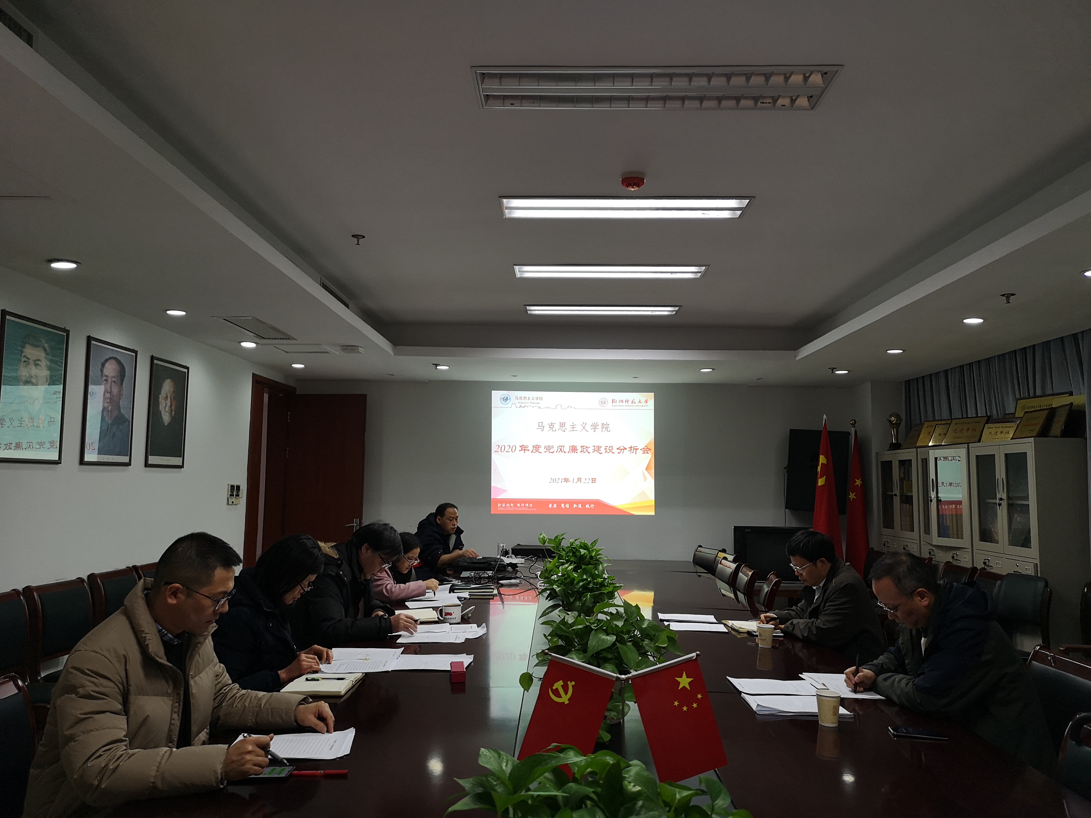 2021年1月22日下午,金牌影院 在恕园1号楼306会议室召开学院年度党风廉政建设分析会,校党委副书记应飚出席会议并讲话,校纪委委员王平、学院党总支全体成员参加会议。