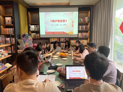 《共产党宣言》第一次全面系统地阐述了科学社会主义的基本理论,是标志马克思主义公开问世的经典著作。在读书会上,三位研究生介绍了《共产党宣言》文本涉及的历史背景与思想史梳理,概括了正文四个章节的具体内容,剖析了七篇序言的时代意义,并结合共同富裕、疫情防控、资本主义时代的商品化与合理化、“两个必然”“两个决不会”的关系等现实和理论问题对文本进行了深入解读。与以往的读书交流会相比,本次读书活动交锋激烈、对话深度,在长达5个小时的活动时间内,与会师生各抒己见,围绕如何理解共产主义社会的理想性与现实性、资产阶级与无产阶级的关系、网络意识形态的重要性、共同富裕的基本内涵等问题进行了充分的探讨,这充分彰显了经典原著的巨大魅力以及学院师生阅读研究经典原著的巨大兴趣。