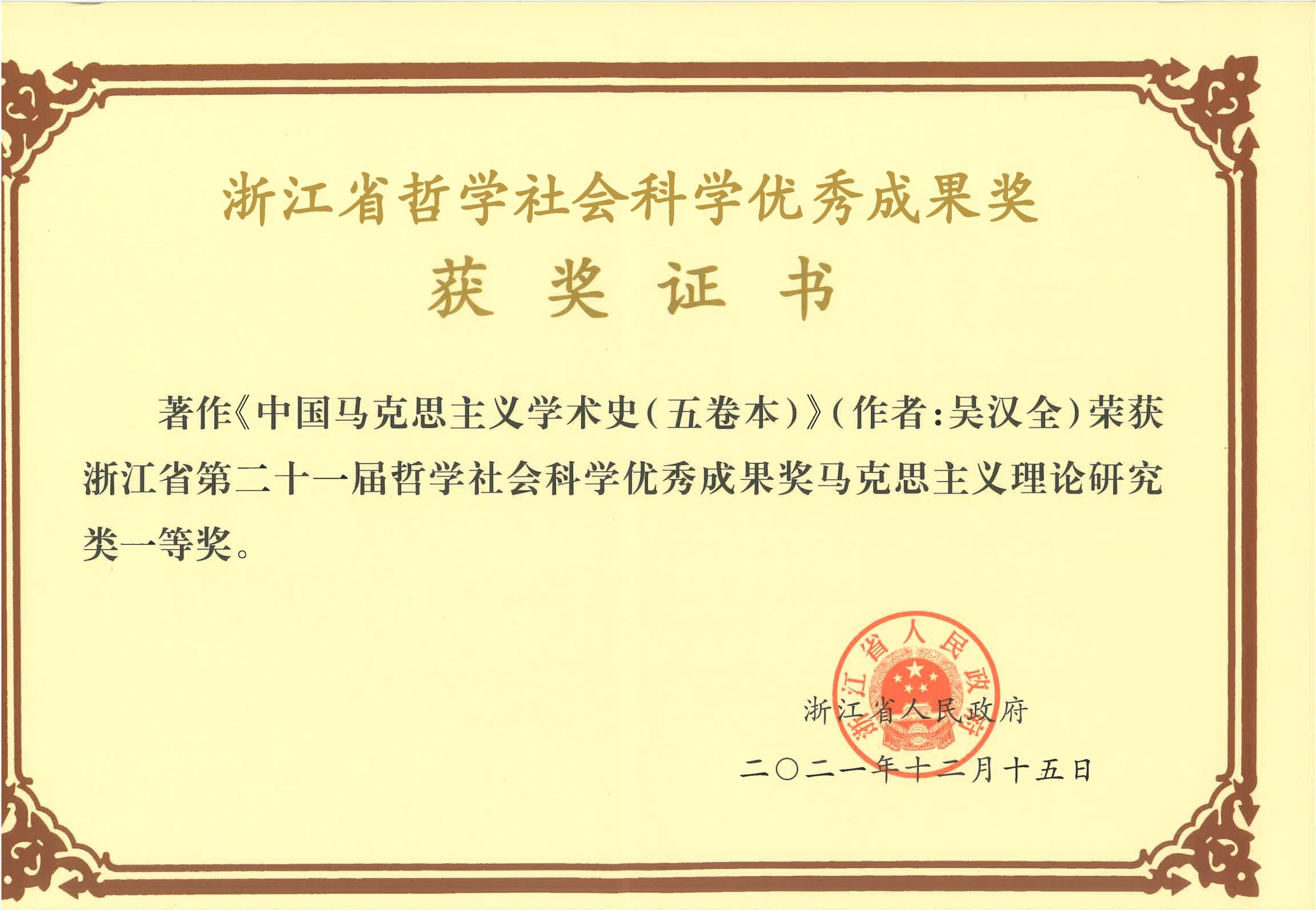 日前,浙江省第二十一届哲学社会科学优秀成果奖评选结果正式公布。金牌影院 教师吴汉全教授主编的《中国马克思主义学术史》(5卷本)和应维华副教授参与撰写的长篇研究报告《论“重要窗口”的丰富内涵与实践路径》分别获得“浙江省第二十一届哲学社会科学优秀成果奖”一等奖(马克思主义理论研究类、应用对策研究类)。