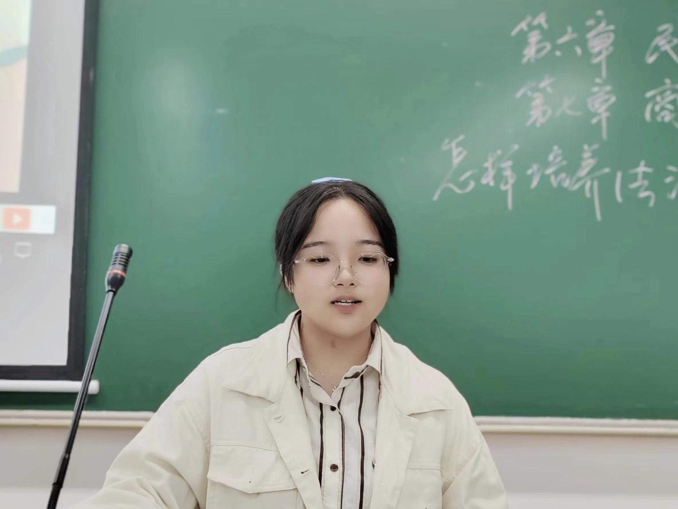 第七组林奕君、吴萱倩同学,通过分享有关吴某父母离异抚养费纠纷案例,让同学们学到了有关抚养费的知识,更让同学们认识到美好家庭对于孩子的重要性。