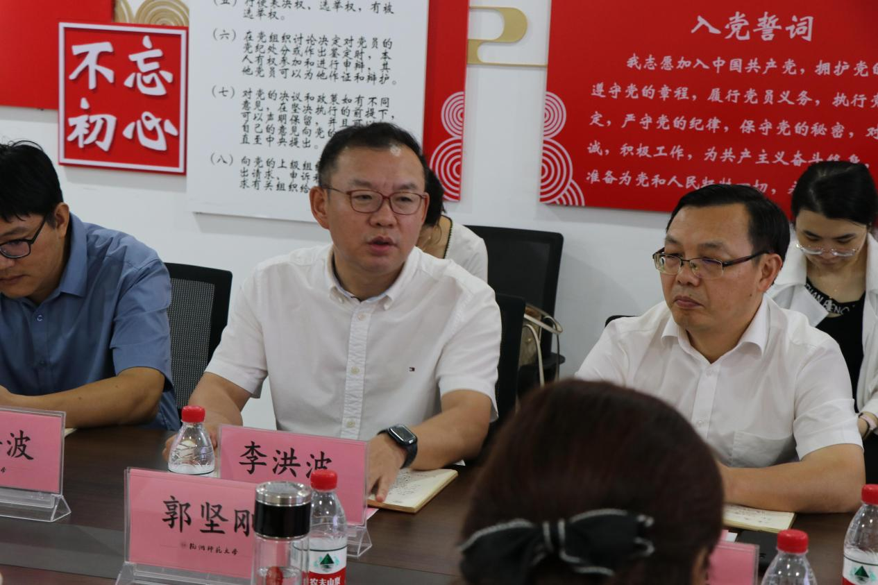 9月13日,嘉兴南湖学院党委副书记郭坚刚携南湖学院金牌影院 的教师来金牌影院 参观交流,金牌影院 院长、党委书记李洪波、副院长龚上华、各教学系部主任和青年教师代表等一同开展交流。
