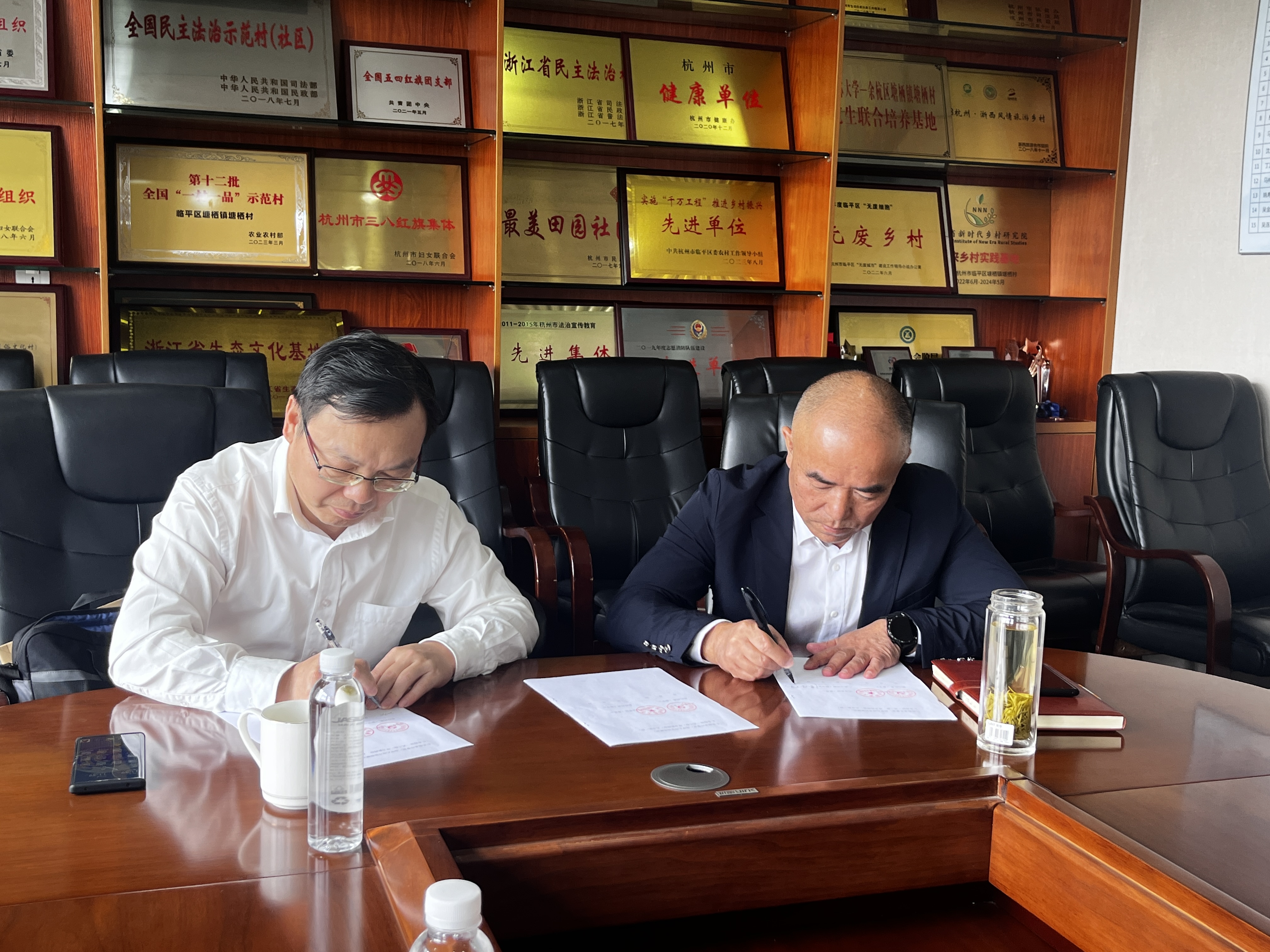 签约仪式上,金牌影院 副院长龚上华介绍了学院发展及建设的基本情况,并指出,与塘栖村合作能够为金牌影院 学生社会实践、志愿服务、项目考察等提供研学平台。希望双方在党建、基层治理、民主法治等领域开展深度合作,通过校地合作促进学生发展,共同合力培育时代新人。同时以合作活动为契机,依托教学科研实践基地,为塘栖村全面推进乡村振兴,走向共同富裕做出积极贡献。尤其希望作为先后荣获浙江省万名好党员、浙江省千名好支书、浙江省农村社区工作领军人才、浙江省城乡治理和服务成绩突出先进个人、浙江省实干担当好支书、浙江省兴村(治社)名师的“硬气”书记唐书记能到校传经送宝,把敢作敢当、干事创业的激情和豪情传递给当代大学生,为高校人才培养和思政教育助力。