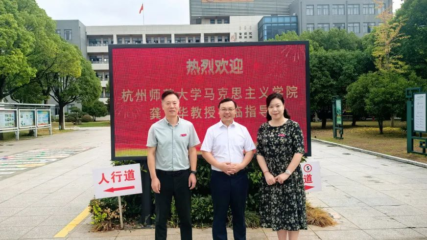 舟山市普陀区东港中学李忠书记、张婕校长分别代表学校对双方合作表示热烈欢迎。李书记高度评价了此次签约合作有助于进一步推进教育共富,指出通过签约能够进一步推进大中小思政教育一体化的跨区域合作;张校长介绍了东港中学的办学特色以及舟山的大思政课资源,希望师大马院能给予较大的帮助,双方能全方位协同发力,共同推动大中小学思政教育一体化建设。