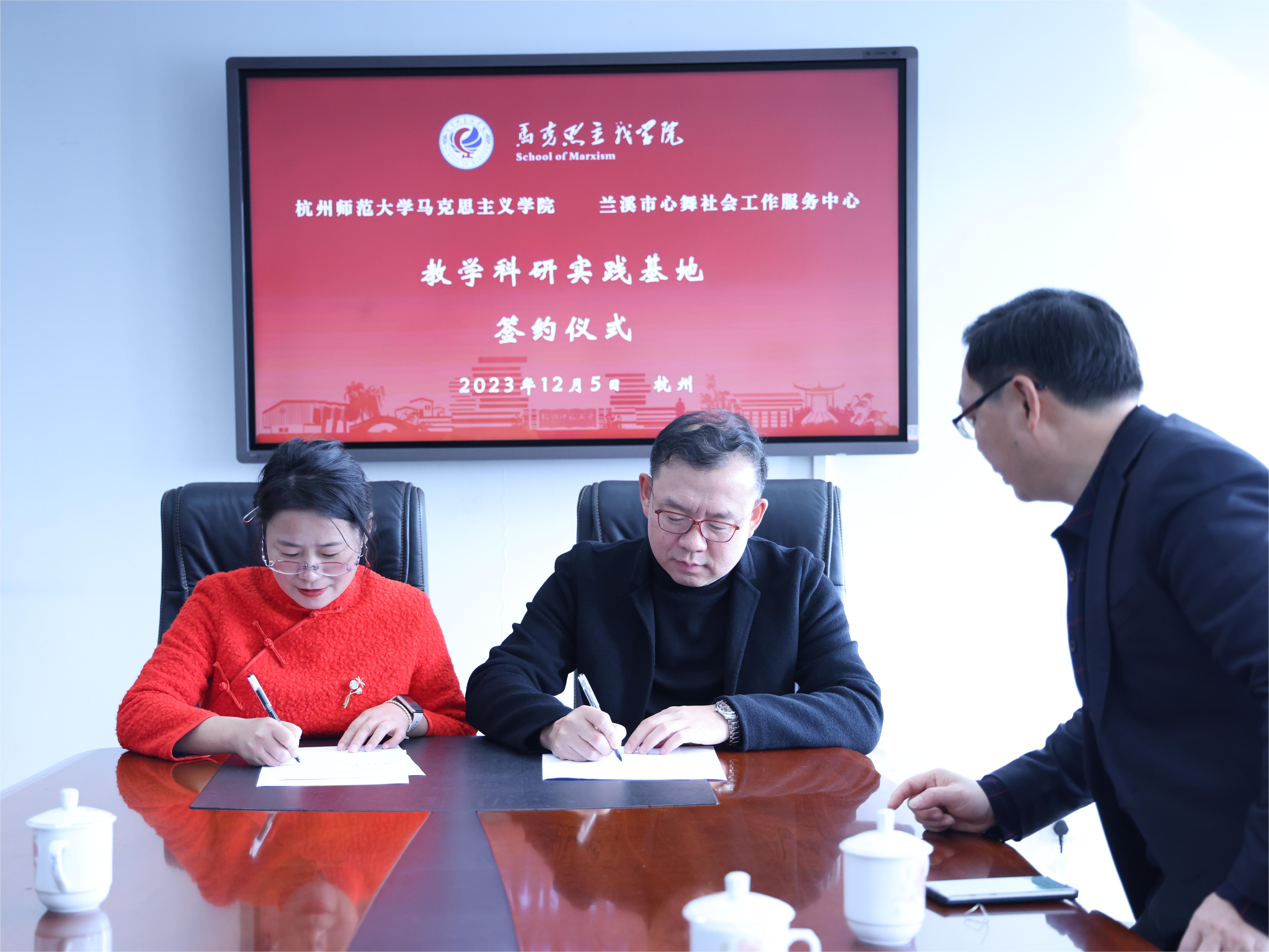 12月5日中午,金牌影院 与金华兰溪市心舞社会工作服务中心举行党建联建、教育科研实践基地建设签约及授牌仪式。