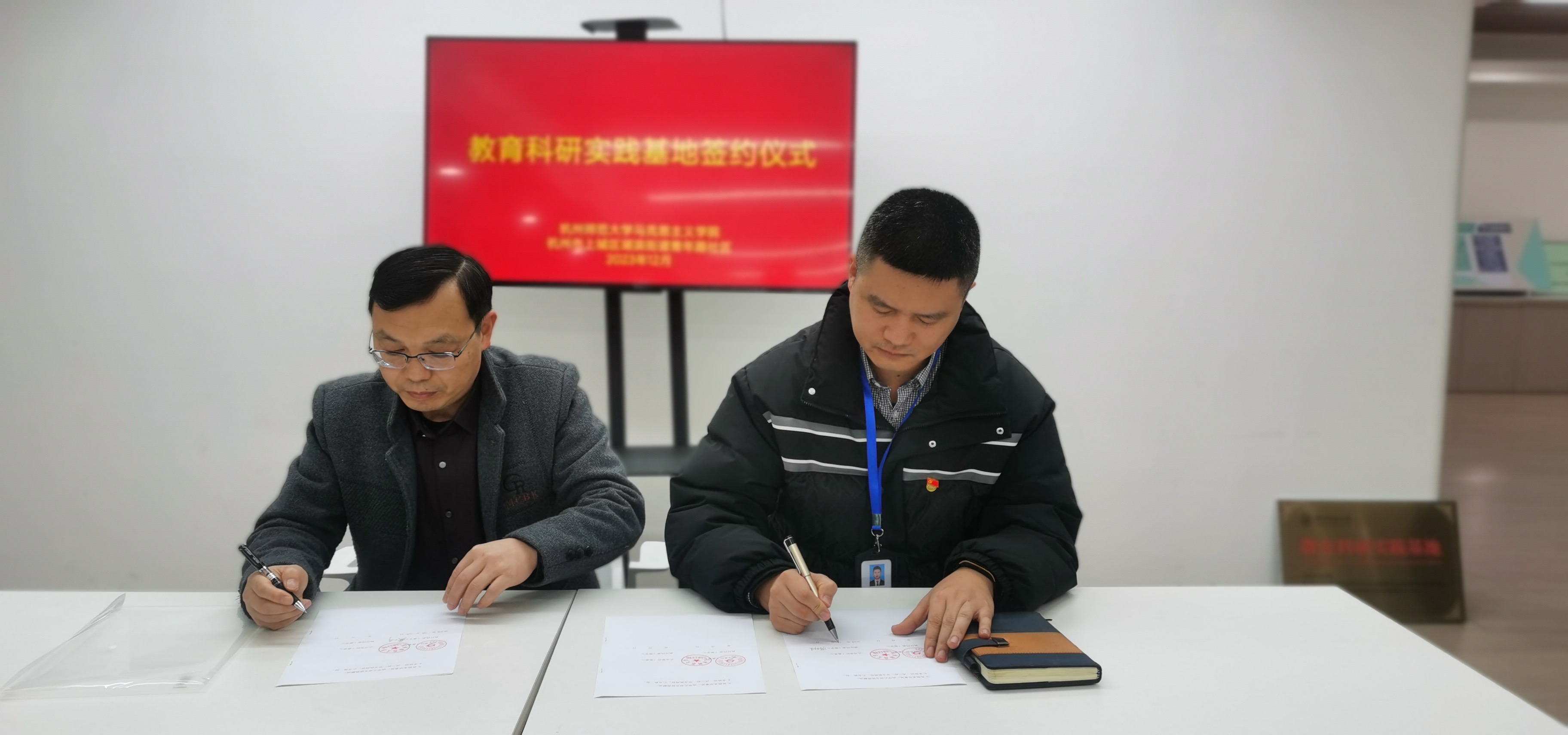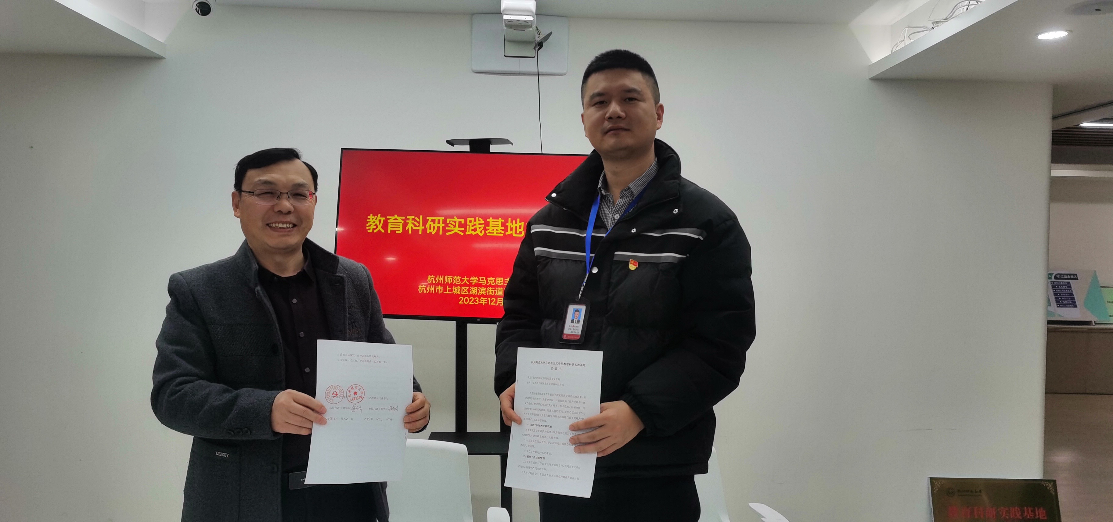 12月12日下午,金牌影院 与上城区湖滨街道青年路社区举行党建联建、教育科研实践基地签约及授牌仪式。金牌影院 副院长龚上华、青年路社区党委书记蒋剑俊代表双方进行了签约授牌。