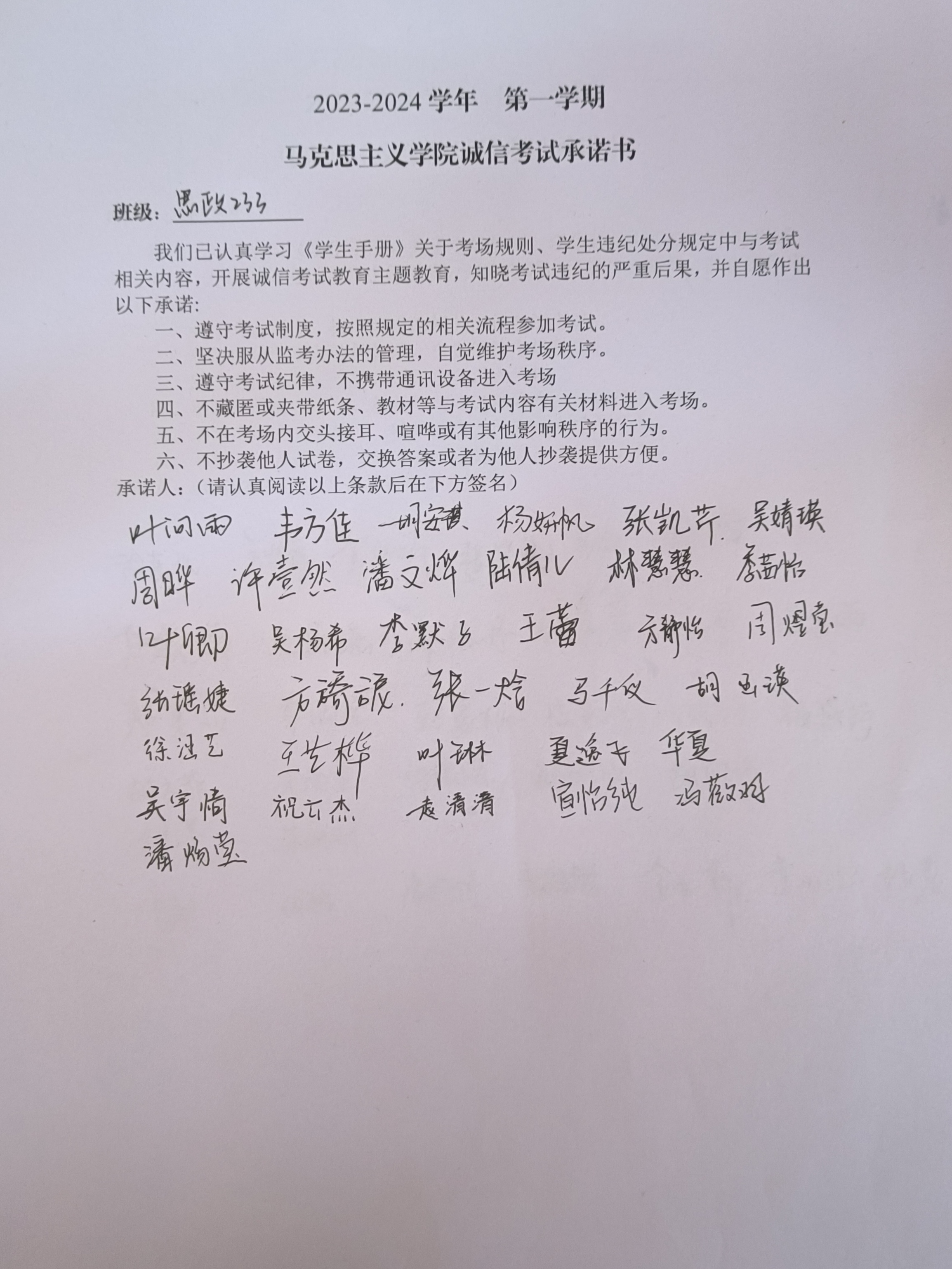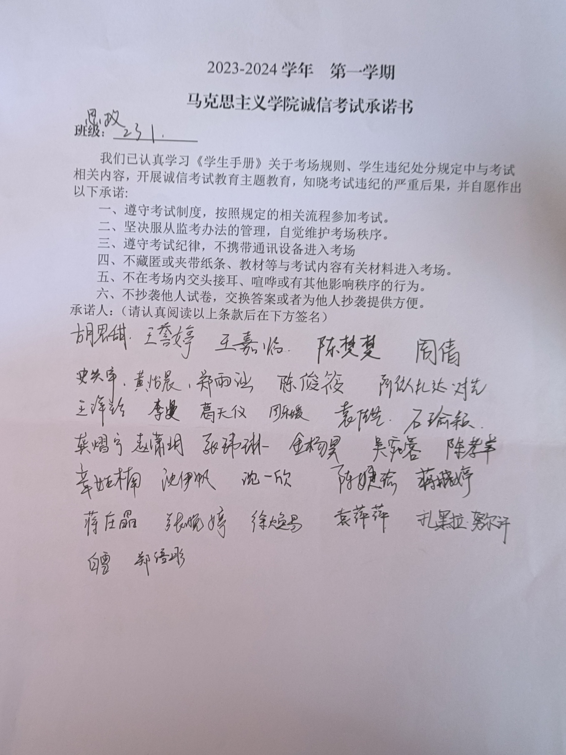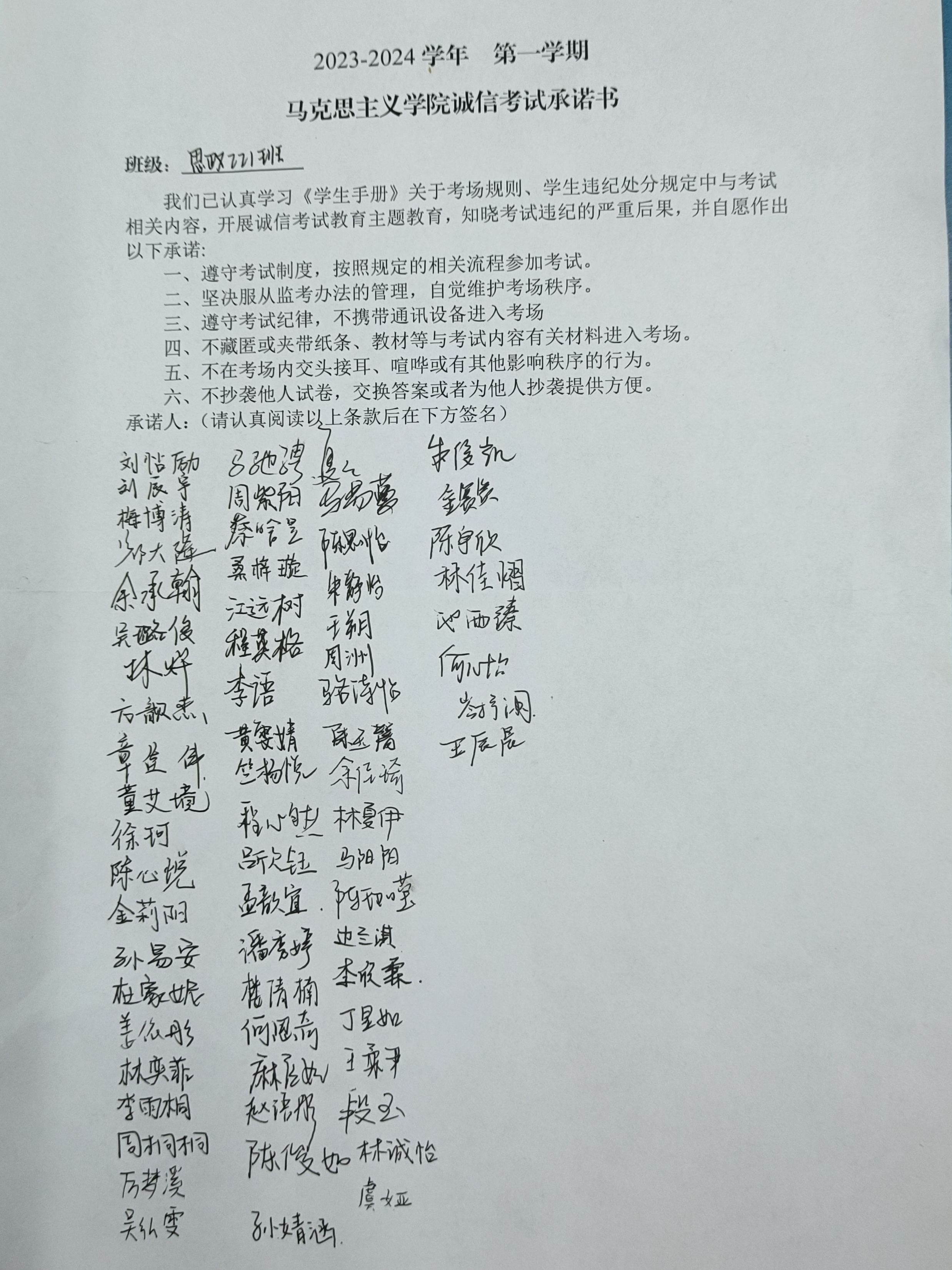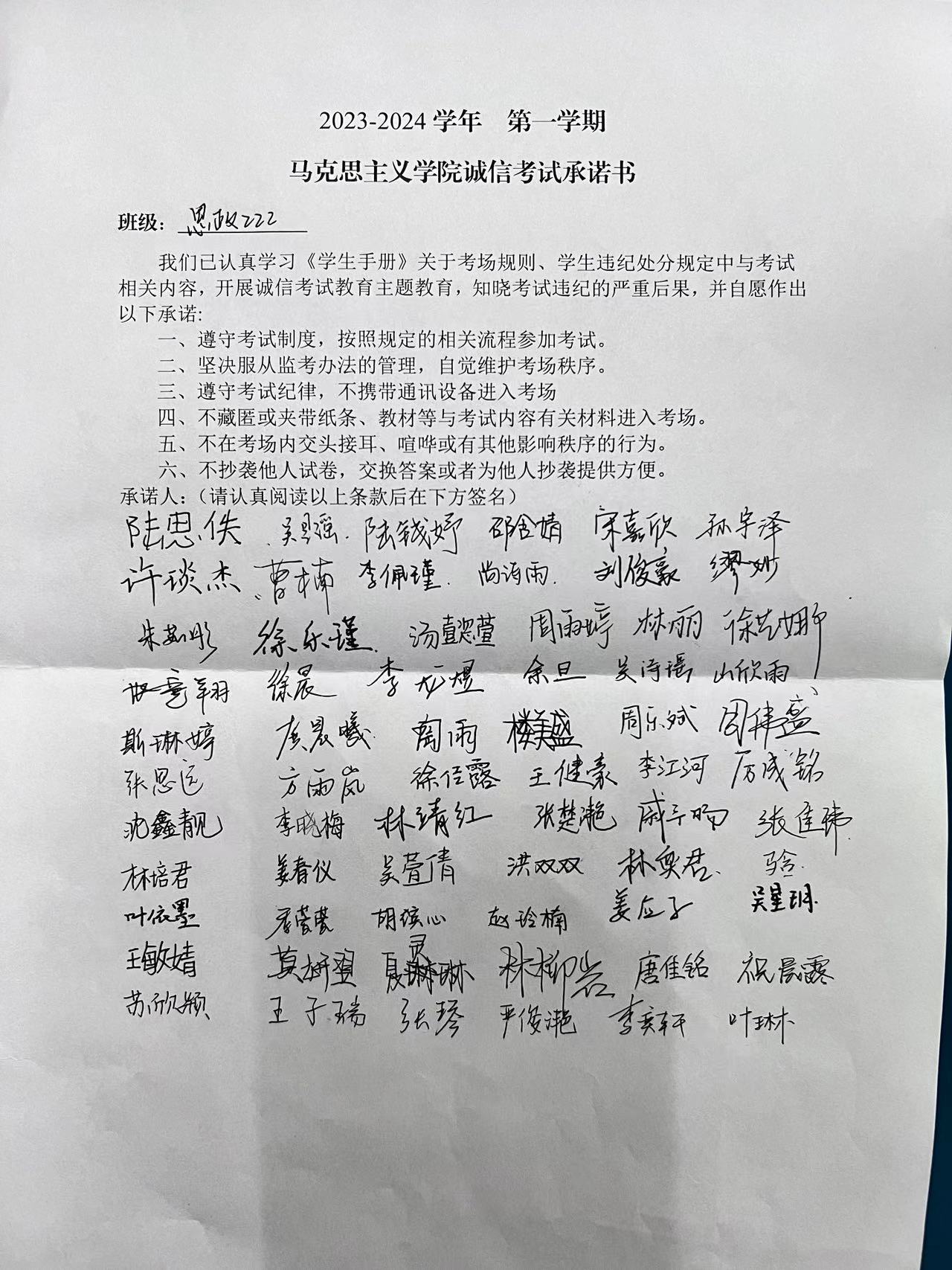 孟子云:“车无辕而不行,人无信不立。”诚信是中华民族的传统美德,为人处世的基本素质。临近期末,作为大学生,我们应当坚守初心,诚信考试。以坦荡的自我,严谨的态度面对考试,通过检测完成对自己更全面客观的认识,从而不断完善自己,赋予这场考试真正的意义。