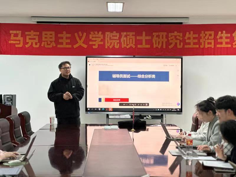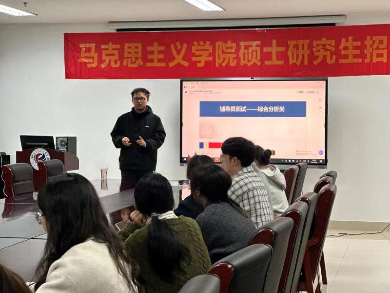 习近平总书记在全国高校思想政治工作会议上指出,要坚持把立德树人作为中心环节,把思想政治工作贯穿教育教学全过程。为了有效提高学生的就业技能,帮助学生更加全面地了解高校辅导员应聘,2024年4月8日晚,金牌影院 在恕园26号楼104会议室开展高校辅导员结构化面试技巧指导讲座,由包肇正老师主讲,马院全体研究生参加。