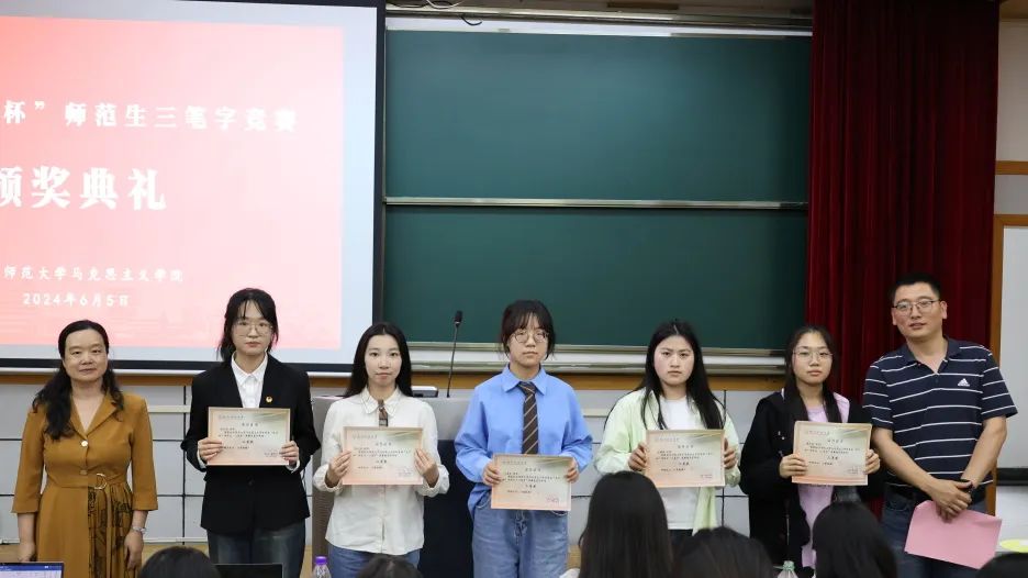 历时两个月的金牌影院 首届“龙行杯”师范生教学基本技能之“三笔字”竞赛迎来了颁奖典礼。本次竞赛分为班级初赛和学院决赛,师范生人人参与,经评委会评审,全院共评选出14名一等奖,18名二等奖、33名三等奖及若干优胜奖。马院学子在一笔一画、一撇一捺中,既互相观摩取长补短,又陶冶情操平和心境,师范生基本技能得到显著提升。