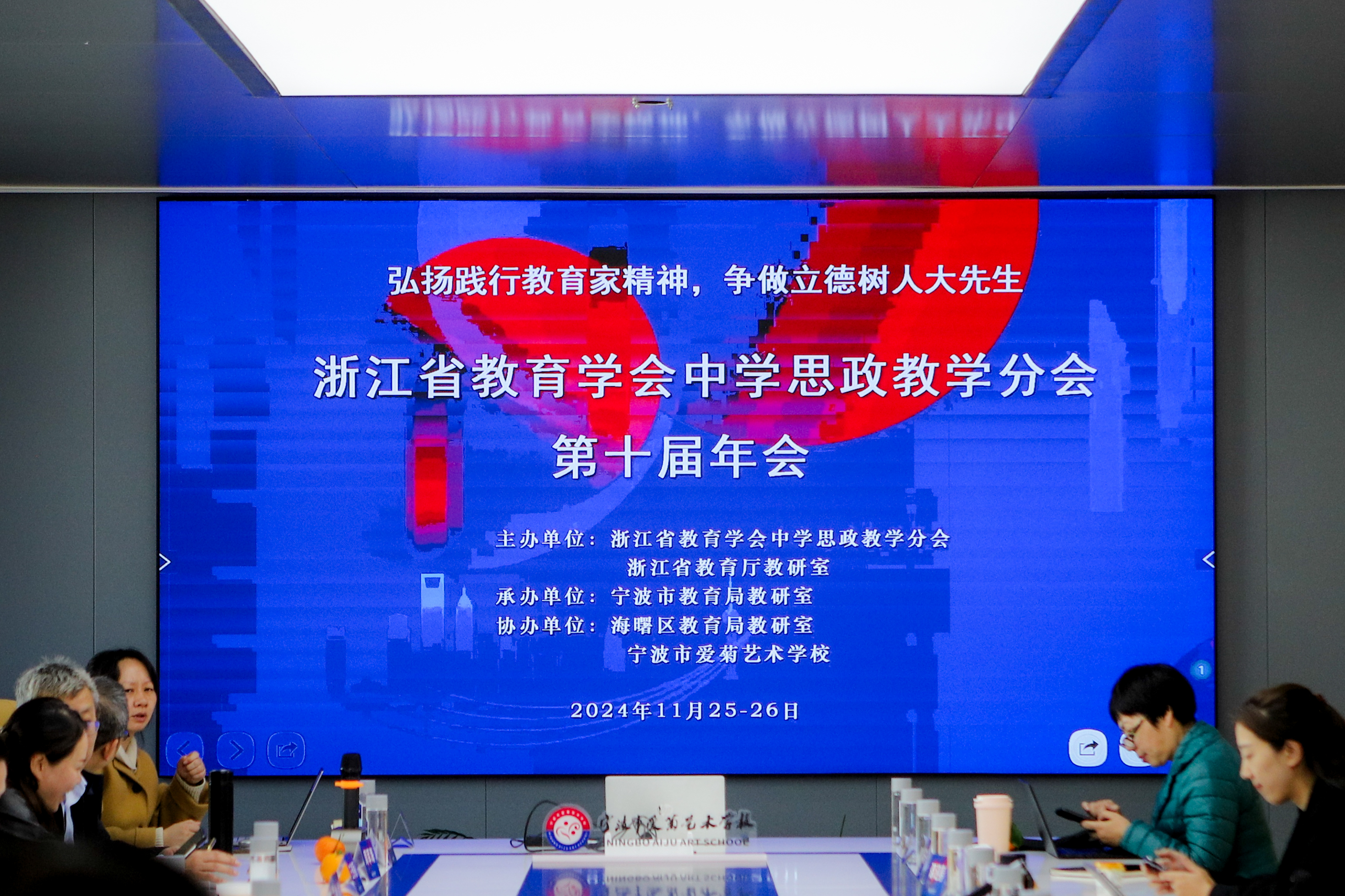11月26日,浙江省教育学会中学思政教学分会第十届年会在宁波市爱菊艺术学校举行。此次活动由浙江省教育学会中学思政教学分会、浙江省教育厅教研室主办,宁波市教育局教研室承办。第十届理事会的候选理事和第九届理事会的常务理事共计50余位专家参加了本次活动。