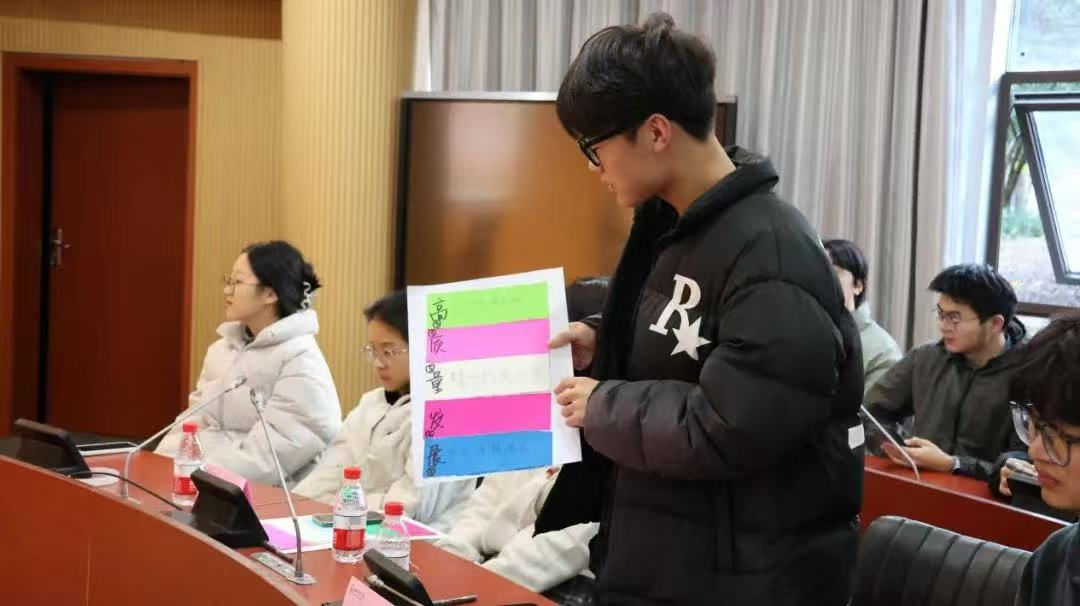在今日充实的学习和热烈的讨论画上句点之际,杨书记上台总结发言,对思政学子做出来新的展望和要求。杨书记追忆去年的亚运主题班会,对思政学生提出了树立专业自信的要求。他指出,今年领悟二十届三中全会精神,践行新时代师大青年风采的班会主题很好地体现了思政专业特色。但仍然存在着留于理论,而缺乏实践的问题。