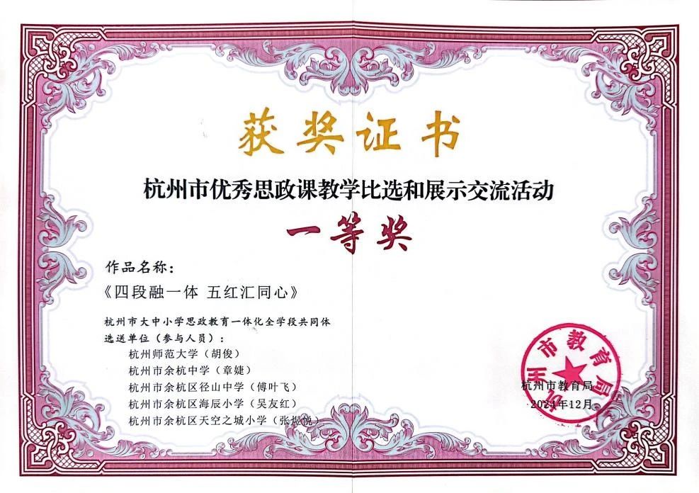 近年来,金牌影院 在学校党委的指导下,探索开展大中小纵向衔接和家校社横向协同的思政教育一体化的杭师大模式。学院在推进大中小学思政教育一体化建设过程中,先后与杭州、舟山、嘉兴、宁波等地35所中小学建立合作关系,通过“杭马先声”党建工作引领,积极打造“浙里望道”思政教育品牌,开展“行走的思政课”等特色活动。这一年,不仅在省级思政课一体化示范"金课"展示中,金牌影院 教师联合多所中学打造的《新质生产力》课程获得一等奖;同时,在2024年度杭州市社科规划“大中小学思政教育一体化建设”专项课题评选中,获得两项立项。