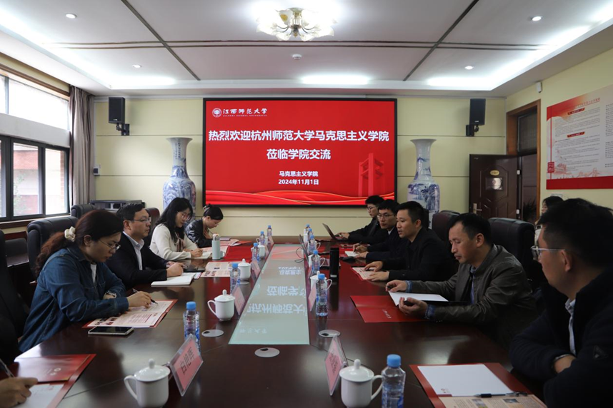 11月1日上午,一行人赶赴江西师范大学金牌影院 学习交流。交流会上江西师范大学马院副院长王钰鑫、副院长严文波等人详细介绍了江西师范大学马院的发展历程、科学研究、人才培养等方面主要成果,并针对学科建设和思政系本科生培养情况进行了详细的交流分享,为金牌影院 进一步完善思政本科专业、打造大思政课品牌建设提供了参考。