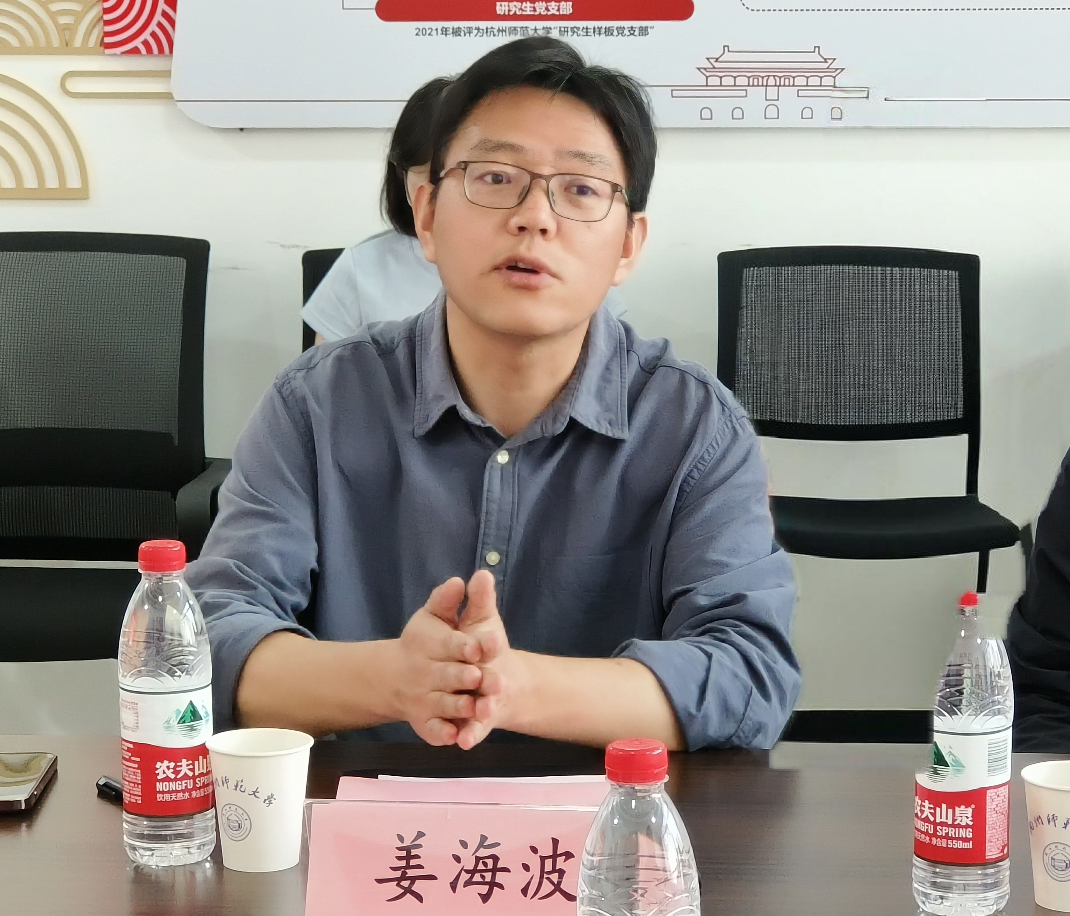 姜海波副院长首先对包头师范学院金牌影院 一行的到来表示热烈欢迎,随后简要介绍了我校的历史沿革和发展近况,详细介绍了马院的学科建设、教学、科研等方面的发展理念、创新做法和经验成效。姜院长表示,希望以本次交流为契机,不断推进两院积极的交流合作,共同推进马院的高质量发展。