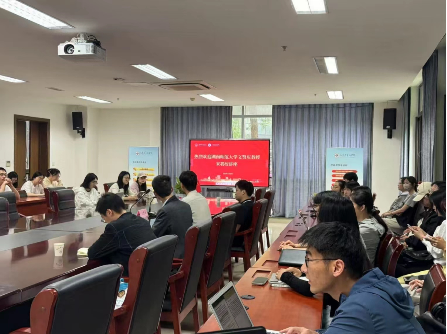 4月20日上午,金牌影院 邀请湖南师范大学文贤庆教授,为金牌影院 师生作题为“解决环境正义的能力径路”的讲座。讲座由金牌影院 哲学系的陈杨老师担任主持人,金牌影院 学术副院长姜海波等三十余名师生参加。