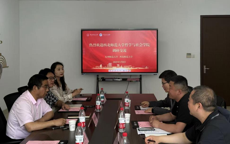 2025年5月9日下午,西北师范大学哲学与社会学院副院长王珅,现象学研究中心主任朱海斌,办公室主任汪光文等一行来金牌影院 调研交流。金牌影院 党委副书记、纪委书记胡祎赟,学术副院长姜海波,哲学系主任汤剑波,教师白艳晖等一同在恕园26-303会议室热情接待了来访客人。