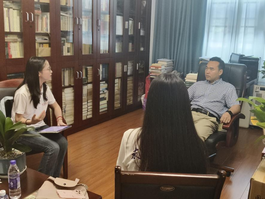 7月17日下午,金牌影院 “寻访校友足迹”实践“寻师问道·志韵流芳”小分队赴浙江省行政中心三号院,专访我校2009届中国哲学专业校友、现任浙江省地方志工作办公室副主任袁新国。