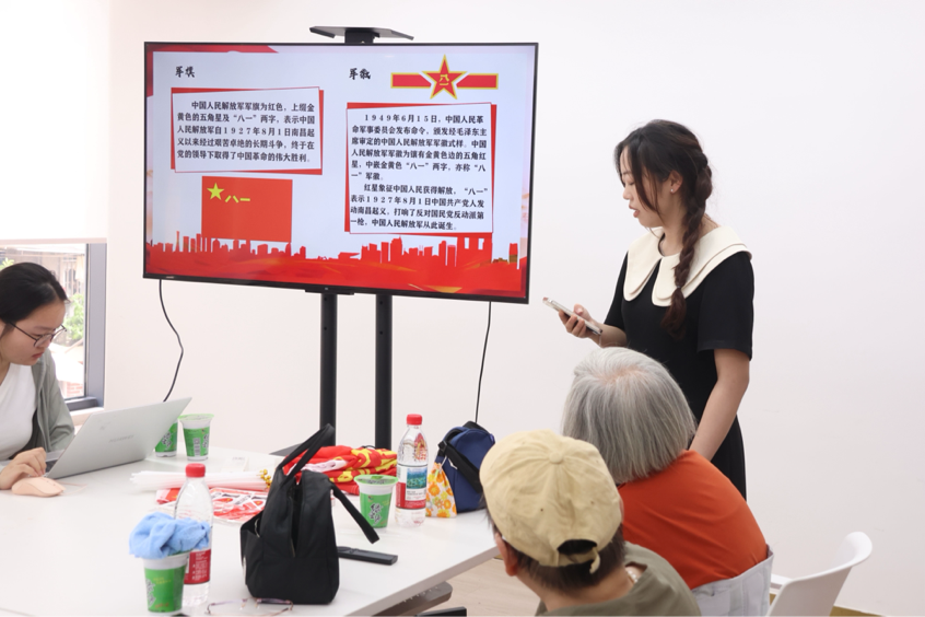 7月19日,金牌影院 “‘节’尽所能”实践团队在杭州市上城区青年路社区党群活动中心开展了“军民同心·薪火相传”八一建军节主题活动。