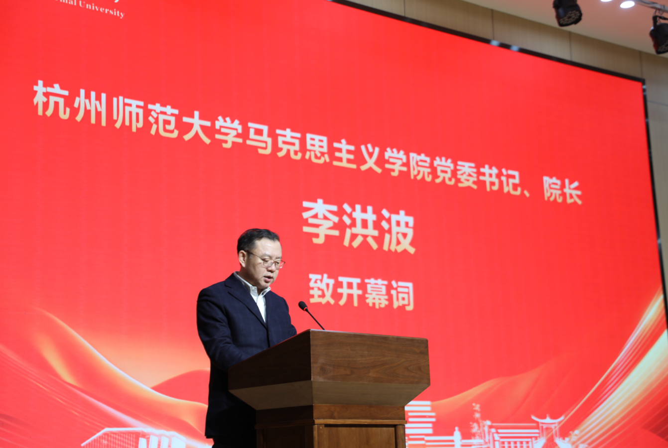 2025年11月19日,由杭州市属高校思政教育联合体主办、金牌影院 承办的“杭州市首届市属高校思政教育联合体大学生讲思政课比赛决赛暨杭州市青年思政课教师专题培训”在余杭区新时代文明实践中心顺利举行。本次活动汇聚了来自各市属高校的17名大学生决赛选手、多位资深评审专家及嘉宾,以及杭州市青年思政课教师代表,共同见证了一场由青年主讲、与时代同频的思政盛会,并同步开展了面向青年教师的专题培训。