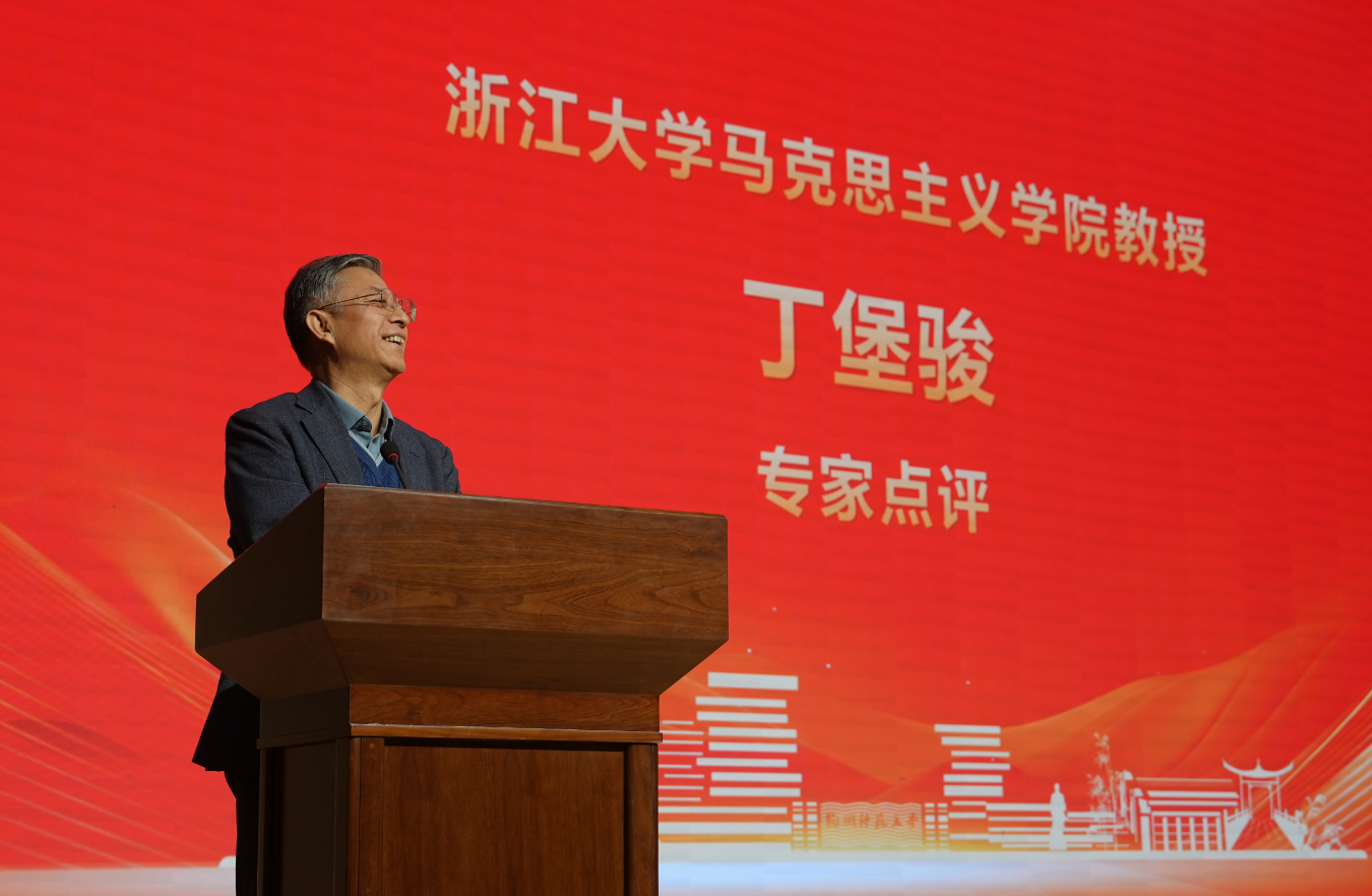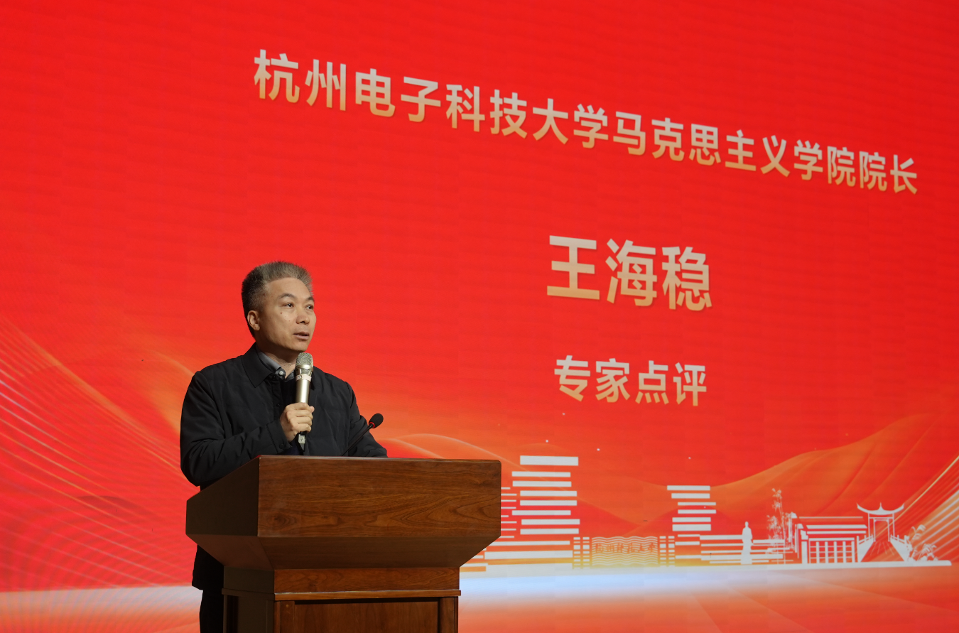 赛事尾声,浙江大学金牌影院 丁堡骏教授与杭州电子科技大学金牌影院 王海稳教授对选手表现作了精准而深入的点评。两位专家一致高度肯定了参赛学子们所展现出的扎实理论功底、开阔时代视野与真挚家国情怀,并从教学实效角度提出建议:优秀的思政课讲授关键在于“讲”而非“背”,鼓励同学们在未来实践中,力求选题“小而精”,做到“以小见大”;在表达上要提升感染力与互动性,让深刻的理论借助生动的形式真正“入耳、入脑、入心”,为同学们未来更好地传播理论指明了提升方向。