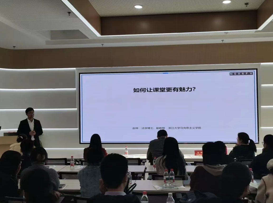 浙江大学赵坤教授则以“如何让课堂更有魅力”为题,提出魅力课堂的三大标准:激发学生兴趣、实现思想共鸣、产生持续影响。赵教授强调,打造魅力课堂的前提是“情感+时间”的双重投入。对教学与学生的热爱是情感基础,而备赛与日常教学中的持续磨课、大量时间投入则是关键支撑,正如青教赛的核心竞争力源于比他人更极致的精力付出。并特别指出,教学比赛并非表演,而是教学综合实力的集中展现,其本质与日常教学一致,都是以学生成长为核心,通过持续打磨实现教学质量的提升。